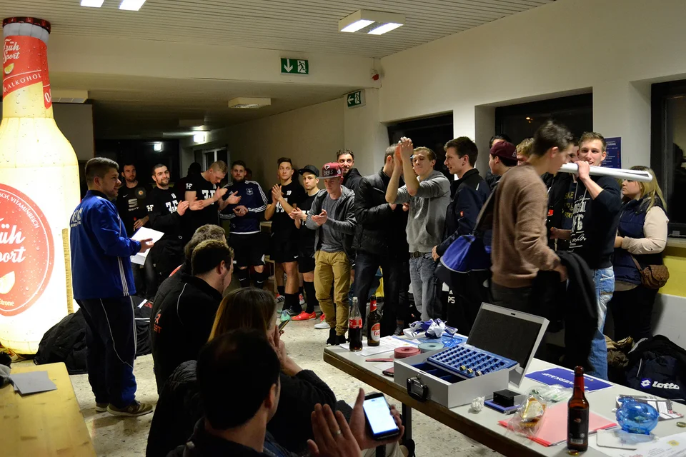 Wie schon im letzten Jahr richtete unser Verein am 12. März seinen Früh Kölsch Cup aus. Dabei konnten die Zuschauer neben einer angenehmen Atmosphäre auch den hochattraktiven Fußball bestaunen, der ihnen von den Teilnehmern geboten wurde. Turniersieger wurden am Ende Die Zehn, den Schluckspechtpokal ergatterten Gas am Glas United (Fotos: Benjamin Gries).