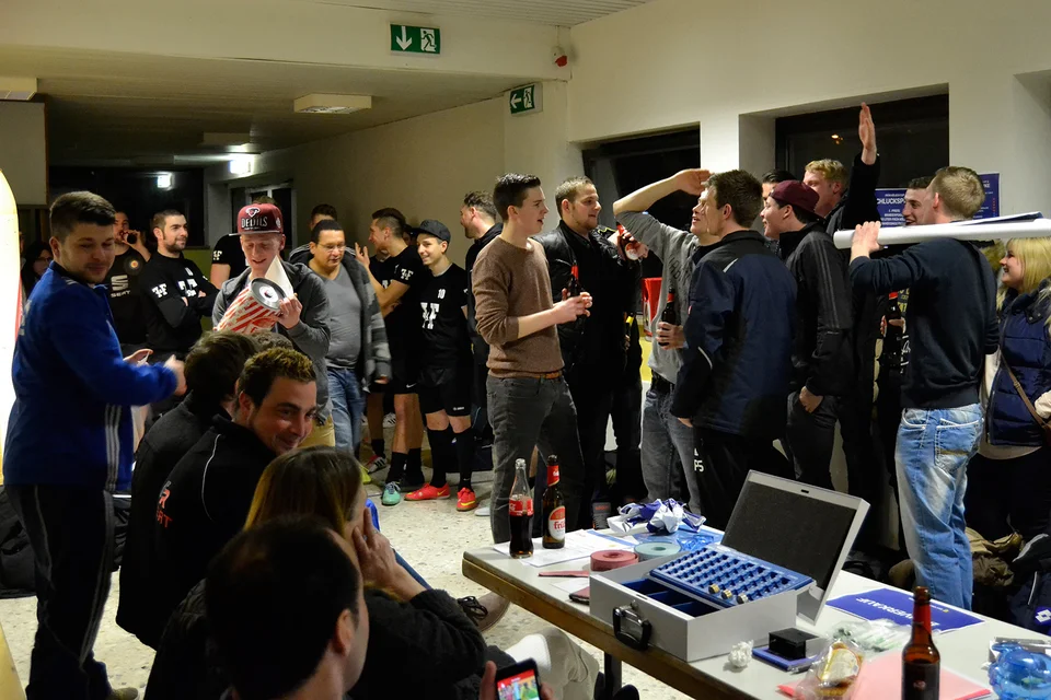 Wie schon im letzten Jahr richtete unser Verein am 12. März seinen Früh Kölsch Cup aus. Dabei konnten die Zuschauer neben einer angenehmen Atmosphäre auch den hochattraktiven Fußball bestaunen, der ihnen von den Teilnehmern geboten wurde. Turniersieger wurden am Ende Die Zehn, den Schluckspechtpokal ergatterten Gas am Glas United (Fotos: Benjamin Gries).