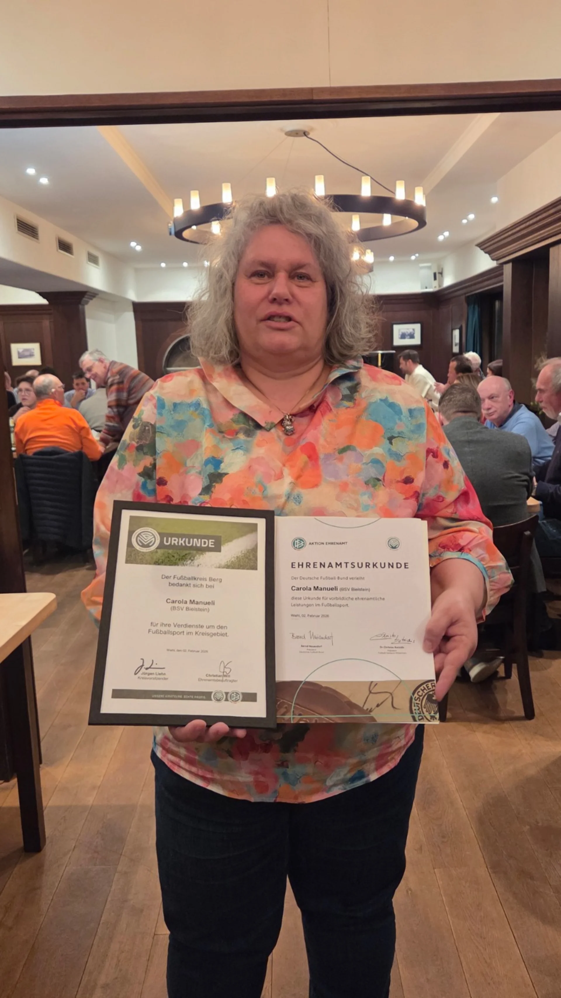 Manchmal hängt das Weiterbestehen einer Mannschaft an genau einer Person. Bei unseren „Wilden Zwergen“ ist das ganz klar Carola. Beim Ehrungsabend des Fußballkreis Berg im Bielsteiner Braustübchen wurde sie als Kreissiegerin beim Ehrenamtspreis des Fußball-Verband Mittelrhein ausgezeichnet – eine verdiente Anerkennung für außergewöhnliches Engagement im Jugendbereich unseres BSV Viktoria Bielstein 1920 e.V..