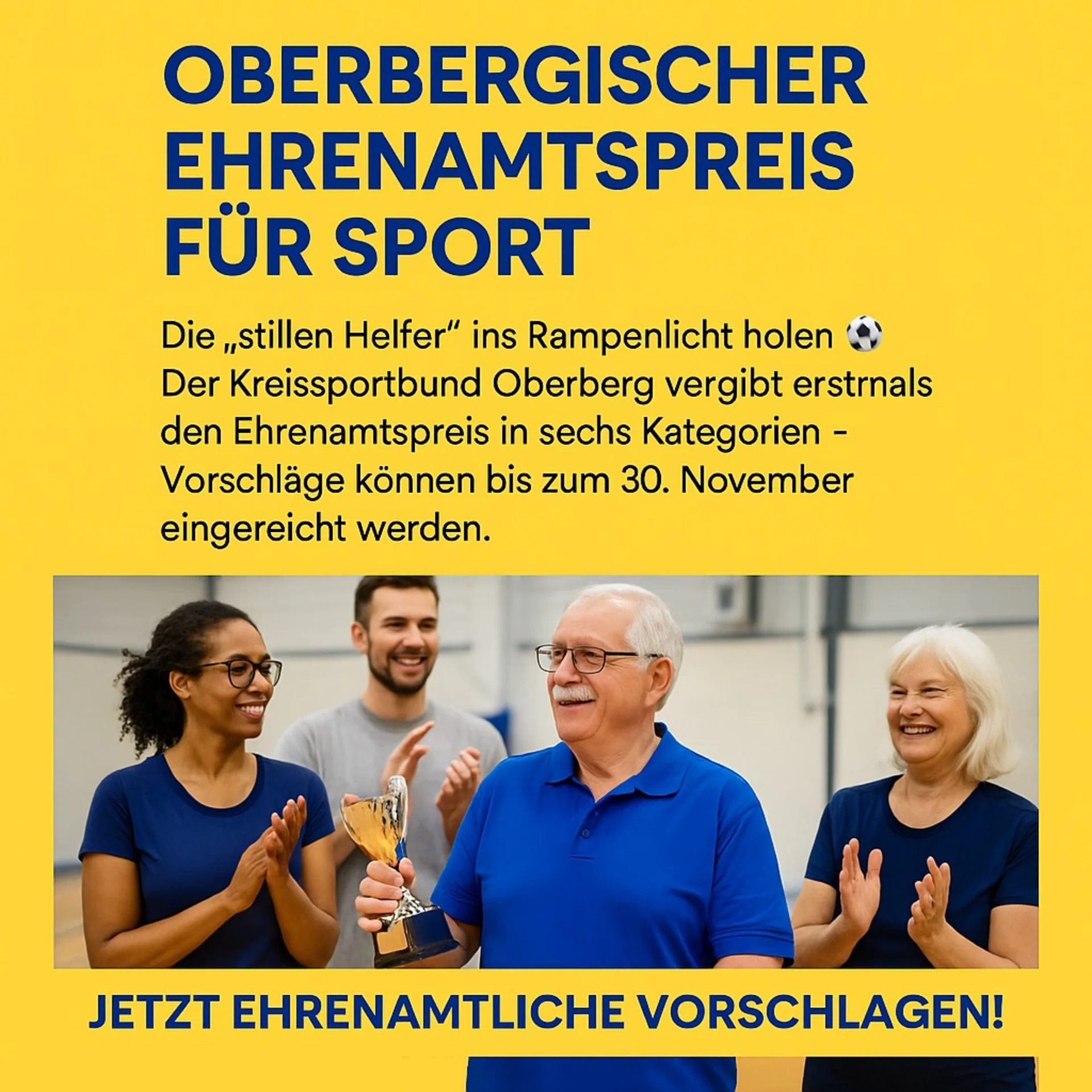 Der Kreissportbund Oberberg verleiht erstmals den „Oberbergischen Ehrenamtspreis für Sport“, um die vielen stillen Helferinnen und Helfer in unseren Vereinen sichtbar zu machen.