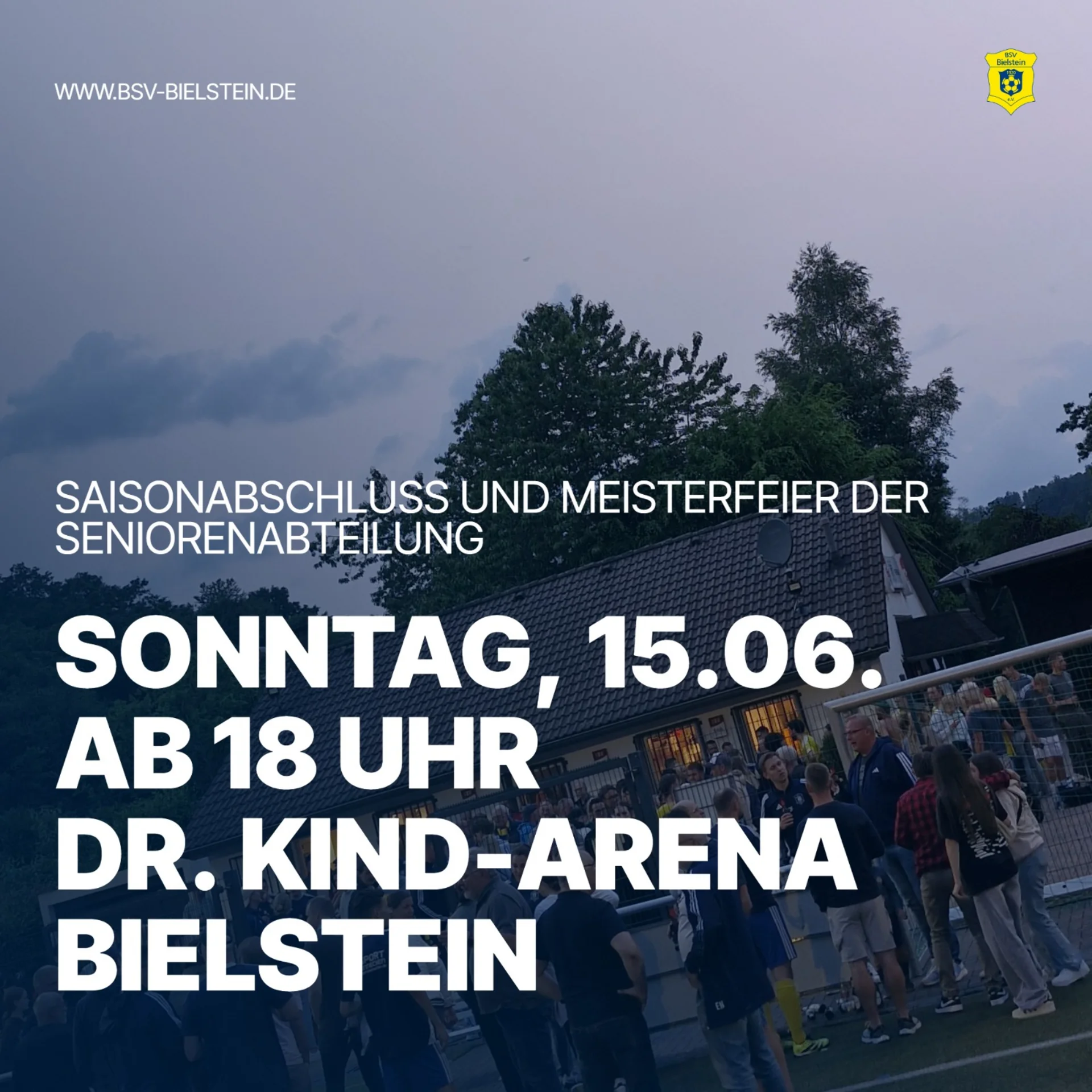 wir laden euch herzlich ein, am kommenden Sonntag, den 15. Juni 2025, ab 18 Uhr mit uns in der Dr.-Kind-Arena Bielstein den Saisonabschluss zu feiern.