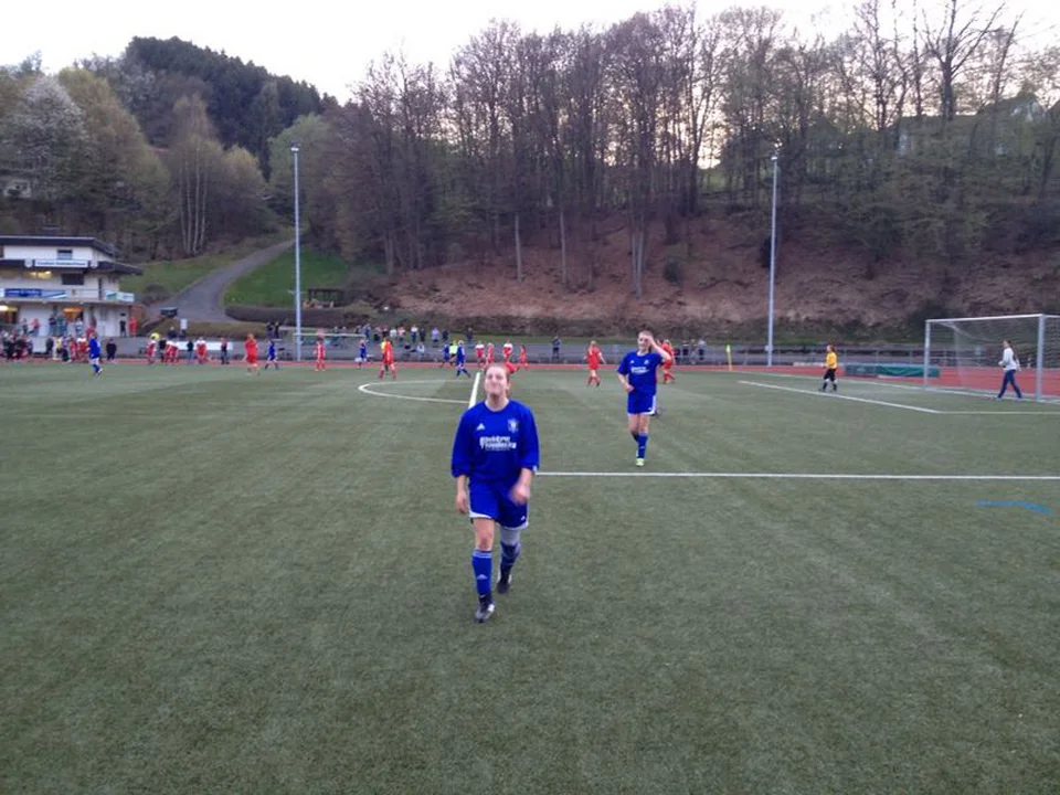 Den Start dieser wichtigen Partie verschliefen unsere Mädchen komplett. So geschah es, dass man bereits nach kurzer Zeit durch eine Verkettung von individuellen Fehlern mit 1:0 in Rückstand lag. Nach dem Gegentor wurde die Mannschaft noch nervöser. Es half nur noch eins: kämpfen bis zum Umfallen. Und das taten die Mädchen dann auch. Mit Erfolg: mit einem strammen Schuss traf Sarah nach Vorarbeit von Jacy zum wichtigen 1:1. Durch den Ausgleich bekam die Mannschaft wieder mehr Sicherheit. Sie kamen jetzt über beide Außenbahnen oder durch lange Bälle zu ihren Chancen, die allerdings zunächst leider nicht genutzt werden konnten. So ging man mit einem leistungsgerechten Unentschieden in die Halbzeitpause.