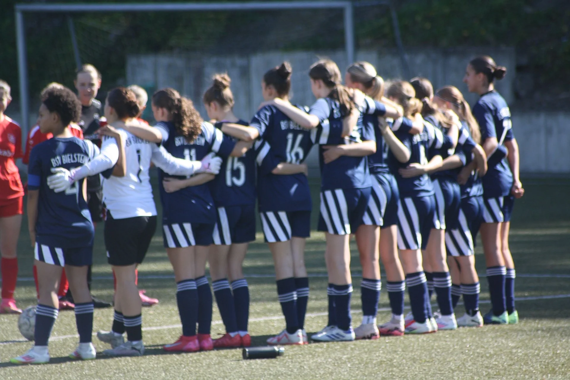 Nach Anpfiff taten sich unsere Mädels recht schwer, die Nervosität war wohl der Grund für mächtig schwere Beine. So konnte Wipperfeld das Spiel gestalten und drückte unsere Mannschaft immer wieder in die eigene Hälfte. Zudem kam noch hinzu, dass aufgrund von sechs Ausfällen unsere Mädels nur mit elf Spielerinnen angereist waren. Nach 20 Minuten gabe es dann endlich die ersehnte Trinkpause, in der die Mädels sich einmal schüttelten und mit eingeschworenem Teamgeist wieder auf das Feld gingen. Ab jetzt war ein anderes Gesicht zu sehen: Endlich konnten unsere U17 Juniorinnen die eigene Spielidee umsetzen und übernahmen das Kommando der Partie. Mit großem Einsatz erzielten die Mädels zwei Treffer in der ersten Halbzeit. Mit diesem Vorsprung ging es dann in die Halbzeitpause.
